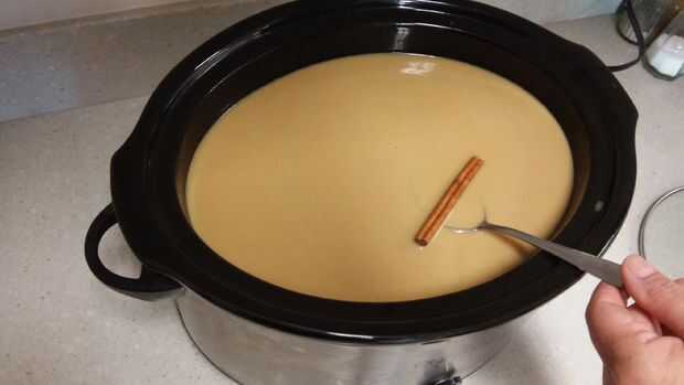 2 lugar canela pega en el café calabaza. Si se prefieren utilizar canela, poner en 1/2 cucharadita. Cubrir con la tapa y el calor durante 30 minutos. Servir en tazas usando un cucharón. Rinde 12 porciones. ¡ Disfrute!