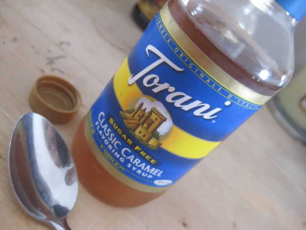 Sacar la cafetera y hacer un simple café regular o descafeinado. Cuando se hace el café, verter el café en la taza de café. A continuación tome el jarabe de caramelo torani y su cuchara. Luego vierta dos fulls de cuchara de caramelo en su café.