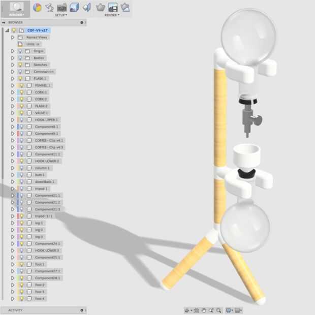 Este diseño fue a través de unas pocas iteraciones. Al principio, yo pensaba de ella como algo que colgaría en una pared, pero decidí ir con un diseño de trípode con tacos porque pensé que no sería más versátil-ninguna necesidad de dedicar el espacio de la pared a ella.