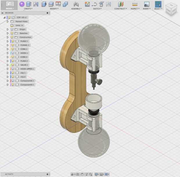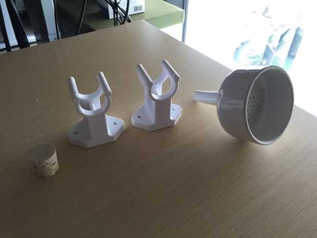 En el primer diseño, había clips 3D impresos que le agarra el cuello de los frascos, pero esto vino a través de menos elegante a mí que un anzuelo simple con una repisa empotrada. Los ganchos holt sólo los frascos fino y trabajaría si fueron hechas de cerámica, que podría explorar más adelante.