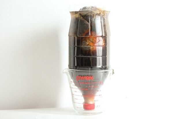 Preparación de café para 12-24 horas, este lote preparado durante 14 horas.