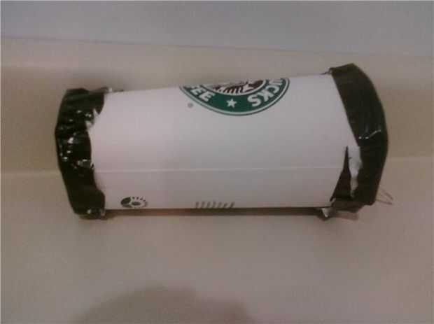 en este instructable le mostraré cómo hacer un airzooka de starbucks gran taza de café. Cuanto más grande mejor taza es para esto porque le permitirá a más aire. Usando una taza de café no consiguió demasiada fuerza fuera de él por lo que sugiero usar algo al menos del tamaño de un gran trago de 7/11. Usted será capaz de usar esto para disparar personas con aire y causar estragos por la anulación de papel de escritorio de los pueblos. Espero que esta y por favor vote por mí en el concurso de la taza de café.