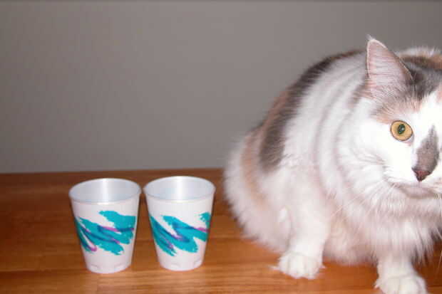Enjuague y seque las 2 tazas de café. Ya mi gato Ting es conseguir emocionado conmigo! Un nuevo juguete-wow!