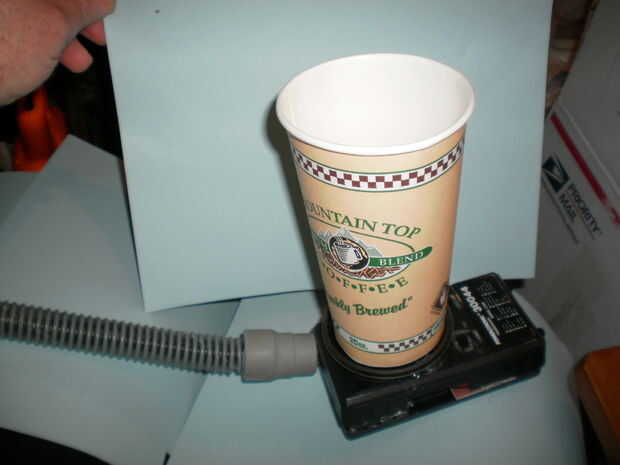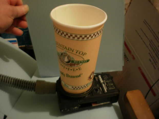 Por cierto: fue modificada un poco la taza de café. Presioné la parte inferior hacia fuera un poco para hacer un "cono" redondeado en la parte inferior, por lo que pude conectar directamente al cono del altavoz. Esto hizo para más amplificación de sonido.