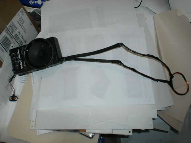 He puesto la Junta en la parte inferior de la caja y el altavoz en la parte exterior del orificio del antiguo orador, como no iba a caber dentro. Mi único medio práctico de colocar esta parte fue utilizar el pegamento caliente.