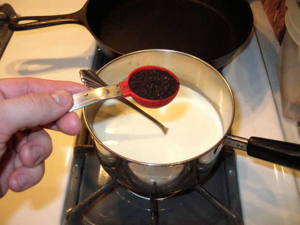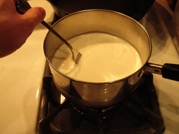 Mezclar crema y la leche en una olla mediana y calentar hasta que hierva baja mezcla.
