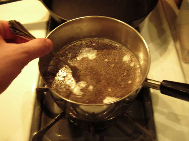 Una vez que la mezcla esté a temperatura, añadir el café molido y permiten empapar durante aproximadamente 5 minutos.