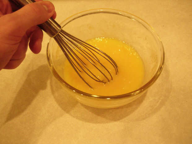 Combinar todos los huevos en un bol con 1/4 de taza de azúcar batiendo hasta consistencia uniforme.