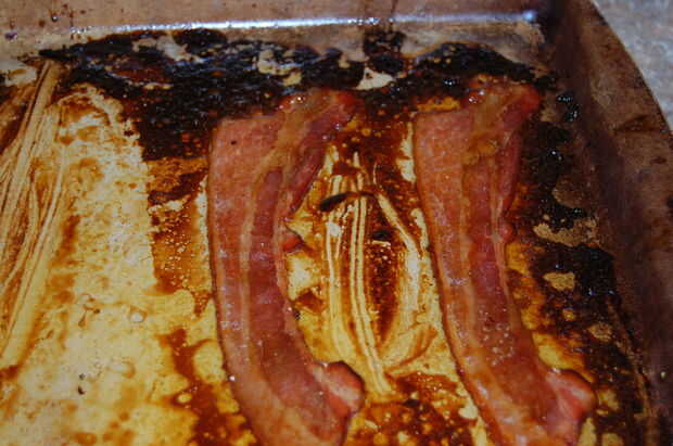 ¿Ver cosas tan negro en los bordes de la olla? Es azúcar moreno caramelizado, el café y el tocino. Ha sido hervida para una etapa dura y probablemente hará la limpieza de los platos del desayuno un poco duros. ¿Sin embargo, ver el raspado entre el tocino? Es donde mi mamá probado y declarado probado como "Caramelo de tocino". Lo hace, y es bastante rico en y de sí mismo. Si vas a comer sin embargo apenas recuerde es realmente muy caliente cuando primero saliendo del horno