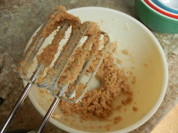 Con una batidora eléctrica, crema el azúcar y la mantequilla. Luego crema los huevos uno a la vez.