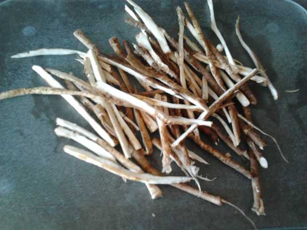 Cortar las raíces en pequeñas tiras, esto es para hacer que seque más rápido en asarlos igualmente.