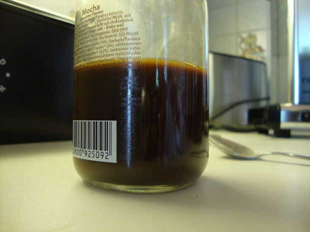 Añadir café, azúcar, polvo de coco y jarabe de la botella. Agitar después de cada material por lo que se mezcla para arriba.