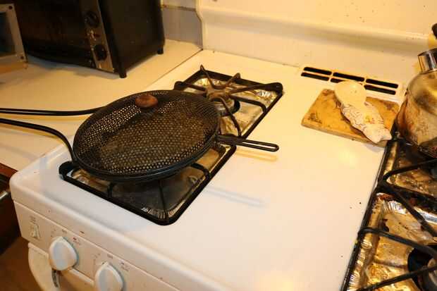 Si usted hace esto sobre una llama ajustable, es decir, Gas / propano estufa, comenzaron el fuego en alto. Tienes que disparar para arriba de la campana en lo alto en este momento.