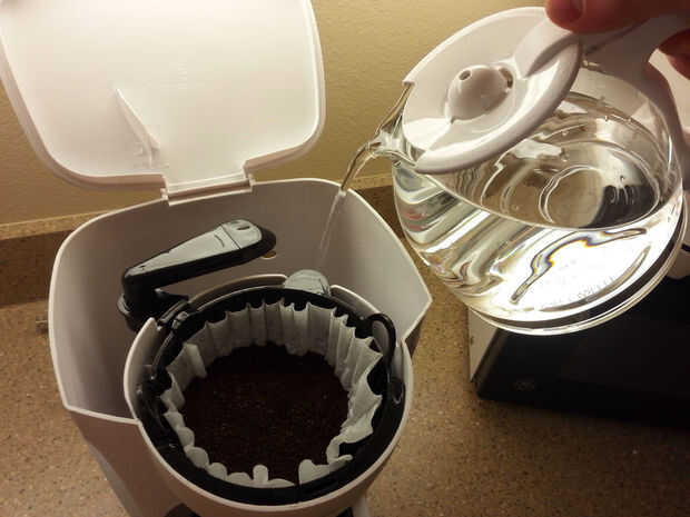 Nota: depende de la cantidad de agua añadida en el paso 3. Use una taza de agua por cada cucharada de granos de. Si utiliza 12 cucharadas de café molido, como yo, utilizar 12 tazas de agua
