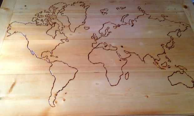 La idea original de este proyecto surgió esto cuando vi una foto de una mesa de centro de riesgo en internet el año pasado. Me encanta el juego de tablero Risk y decidió dar haciendo uno a ir. La tabla resultó excelente y estoy muy agradecido a quien tuvo la idea original! A partir de ahí decidí hacer una tabla más práctica para los tipos de Junta no-juego-entusiasta. A mí un mapa del mundo siempre trae un sentido de pasión por los viajes, y qué mejor manera hay comenzar un día además de pasión por los viajes y café. Este Instructable centrarán en Cómo hice la mesa de la mapa del mundo, pero os pongo unas fotos de otras tablas que he hecho al final de esto y si tiene alguna pregunta acerca de cómo hacerlo no dudes en preguntar! Esperamos que disfrutes!