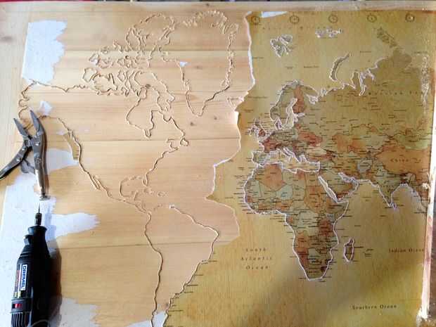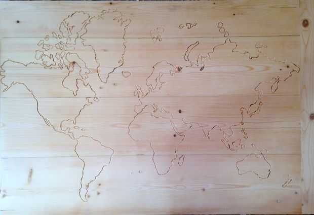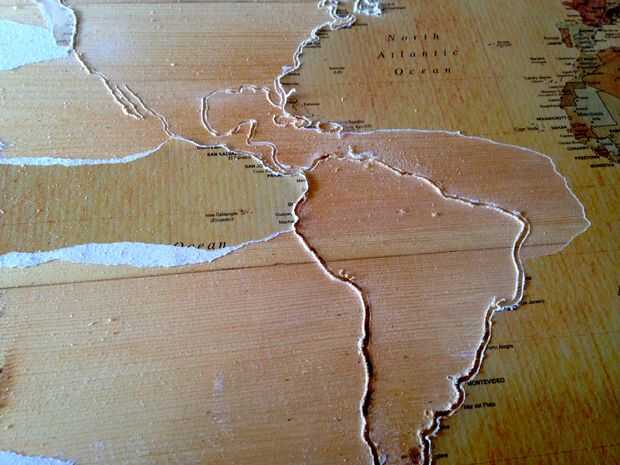 Después de usar cada uno de los bits que deben tener el mapa sentado gloriosamente delante de usted, mostrando al mundo en todo su esplendor. Si pega tu mapa a la madera puede cubrirse su mapa en negro mugre pegajosa, pero que está bien, sólo tendrás que hacer algunos seria lijar para deshacerse de él.