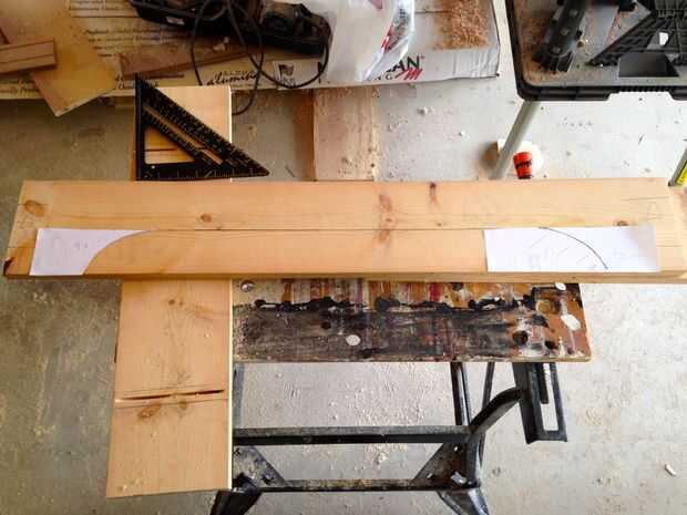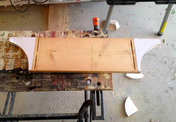 La parte inferior de la tabla, o falda, no es totalmente necesaria, pero agrega fuerza y creo que mejora mucho el aspecto de la tabla. Para construir la falda cortar dos tableros de 1 x 6 36 pulgadas de largo y dos de 24 pulgadas de largo. Decidí darle la falda a una mirada así que redacté las curvas en el papel, fotocopia esas curvas que eran todos iguales y luego pegado a la madera. Cortan las curvas con una sierra de calar.