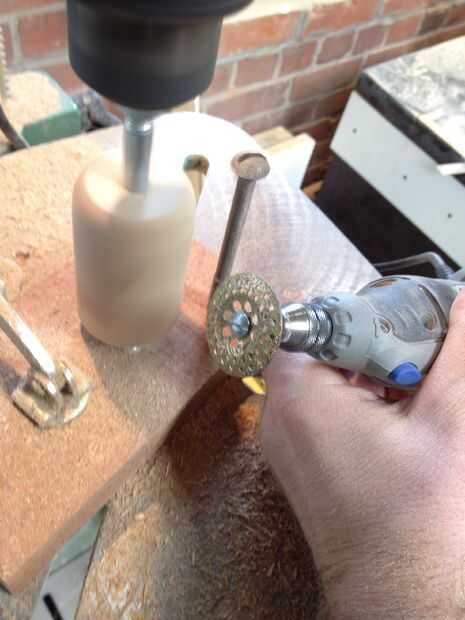 Después de instalar la pieza de madera encienda el taladro y utilizando las herramientas como el cincel, las rebabas del carburo, discos etc, empezar a dar forma aproximada. Recuerde cincel siempre posterior lado derecho de la toolrest si no que probablemente la pieza de madera de desecho y lastimarse.