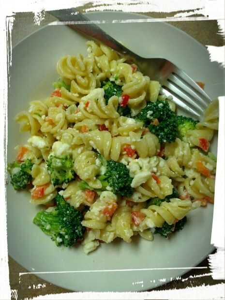 Cuando estaba en la Universidad, tuve un amigo que se fue a vivir con su hermana en Calgary para un verano. Trabajó en un café y trajo esta receta de ensalada de pasta. Es super fácil y muy delicioso. Cada vez que yo lo he servido, he tenido comentarios positivos.
