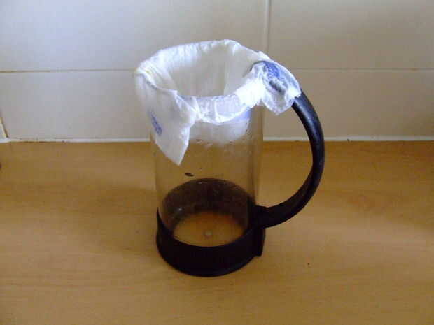 Moje papel y molde para la parte superior del recipiente. Asegúrese de que el se aferra de papel al lado de la jarra o vas a caer. Usted puede hacer este derecho en la Copa, pero hacía 2 tazas.