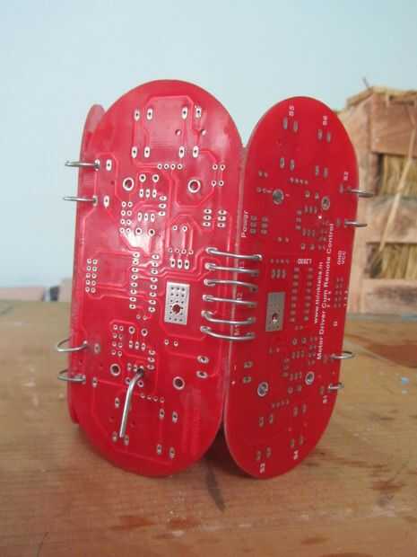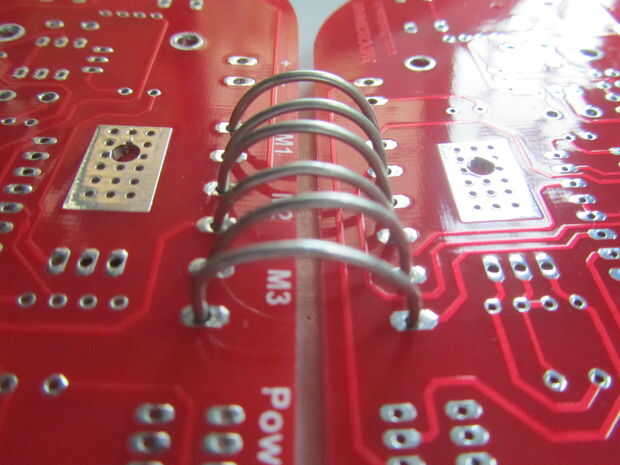 arreglé el PCB en un hexágono. Vinculados los agujeros con pequeños anillos de hilo de estaño. Utilizar Araldite (resina + endurecedor de base adhesiva) para mantener toda la estructura rígida.