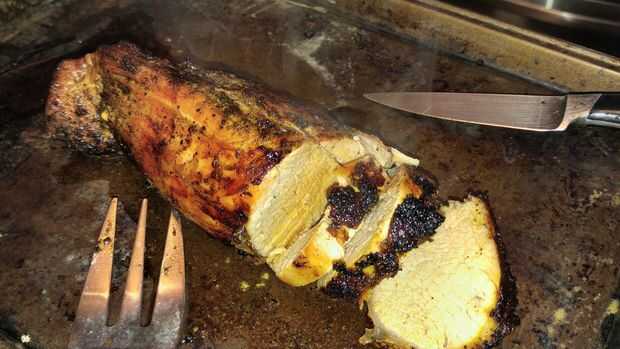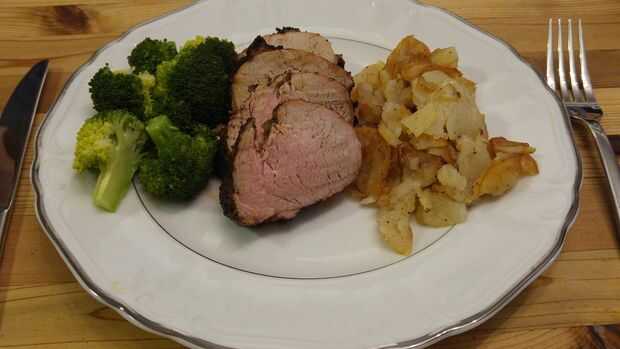 Corte y sirva cuando sea necesario. Desea el jugo en la carne tanto como sea posible. Serví minas con brócoli al vapor y papas de la casa.