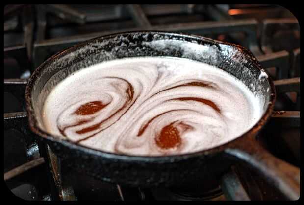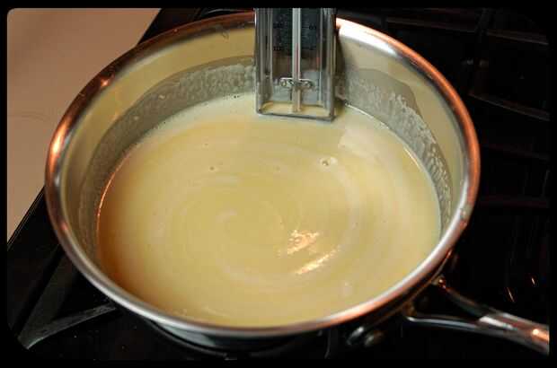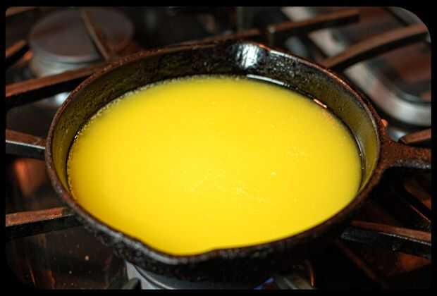 Al mismo tiempo, derrita la mantequilla poco a poco en una sartén a fuego bajo. Mantequilla se Dora no sólo cuando cambia de color, pero cuando comienza a desprender un aroma a nuez.