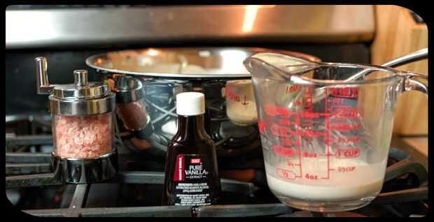 Quite de calor y revuelva mezcla de arrurruz, extracto de vainilla y la sal con crema. Mezcle mantequilla dorada en crema con un batidor hasta bien combinado. En un recipiente hermético y frío en el refrigerador hasta que llegue a 40 grados Fahrenheit (más probable durante la noche).