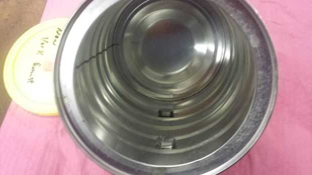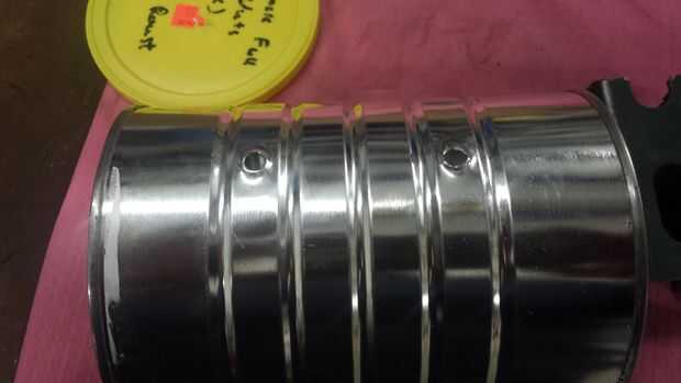 Una vez que haya perforado los agujeros, coloque la lata en la base con las cabezas de los pernos dentro de la lata. Utilicé arandelas de presión, porque no quiero tener que preocuparse por los pernos que salen de la base y haciendo un lío caliente melty.