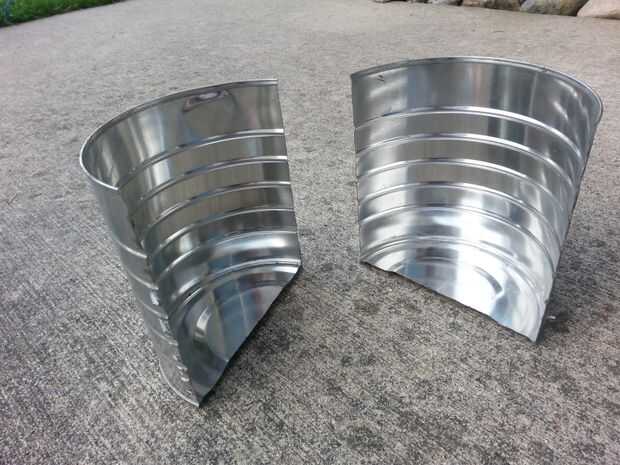 Utilizar una regla flexible para dibujar una línea que marca la lata por la mitad. Hacer todo lo posible para hacer la línea tan cerca de la mitad del recorrido todo alrededor. Le ayudará a marcar un punto de centro en un extremo de la lata. Hay muchas maneras de hacer esto - aquí un instructable para ayudar. Utilice el Dremel para cortar la lata por la mitad.