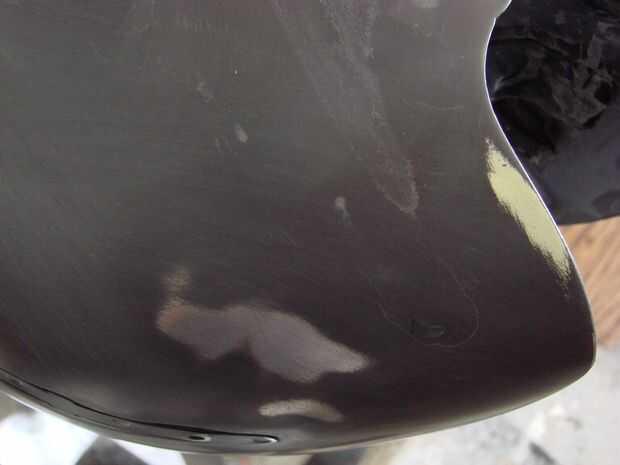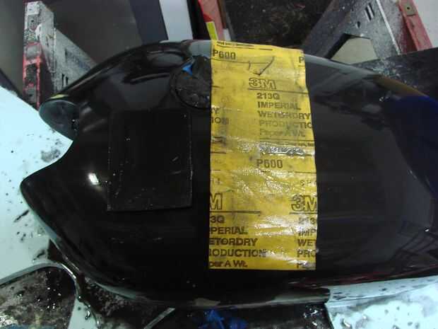 Después de permitir que el imprimador se seque durante al menos 24 horas, usted puede mojado-arena los defectos fuera de la cartilla. Utilice lija de grano 600, abundante agua y un bloque de lijado. Usar una almohadilla de espuma flexible que corté de 6 mm elaboración de espuma. Esto sigue los contornos del tanque muy bien dejando una superficie lisa. Idealmente quiere evitar el lijado a través de metálico o de relleno, pero que bien pueden ocurrir dependiendo de qué tan grave son los defectos que tratan de quitar. Es una pérdida de tiempo suponiendo que la capa de color oculta los defectos de la pintura de base... no me preguntan cómo sé esto!