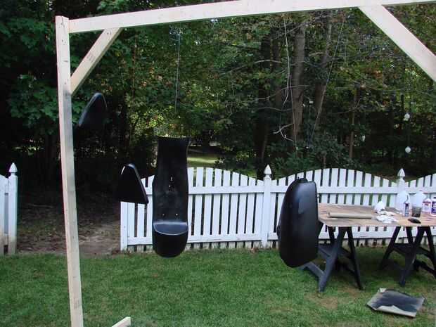 Mi cabina de pintura es al aire libre. Las piezas se cuelgan de una estructura de 2 x 4 construida temporalmente. Mientras que esto es genial para la ventilación, necesita elegir una época del año donde la concentración en el aire partículas e insecto es baja. Polen arruinará su trabajo de pintura, como insectos que se colocan en la superficie antes que se seque. Guardo un par de pinzas de mano para desplumar a insectos de la pintura húmeda. Sin embargo, esto puede resultar en defectos superficiales a veces es mejor dejar que la pintura seque completamente y luego mojado-arena el insecto fuera de la pintura.
