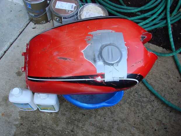 2. lavar bien el interior del tanque. Te recomiendo Marina limpia. El producto elimina todos los restos de gas y barniz desde el interior del tanque. Las instrucciones se proporcionan con el producto - a seguirlos. He utilizado cinta adhesiva para bloquear el orificio de la tapa de gas. El trabajo se realiza cuando no hueles gasolina.