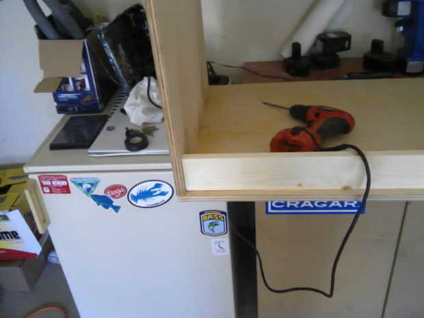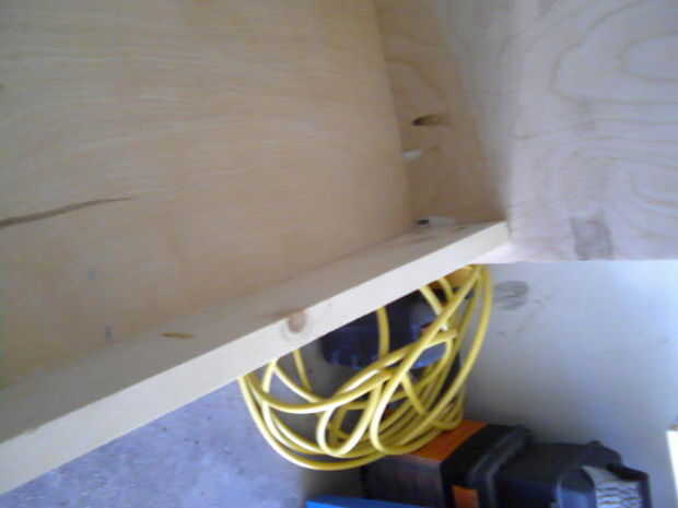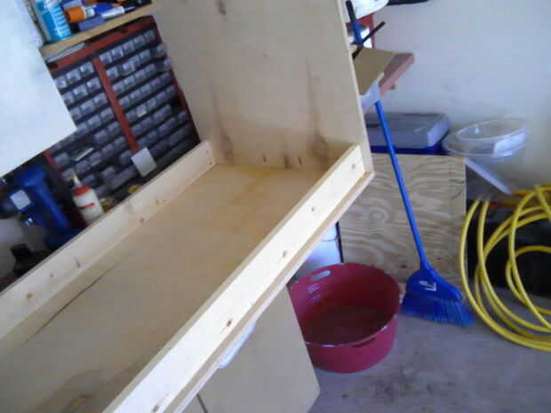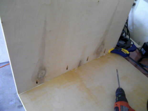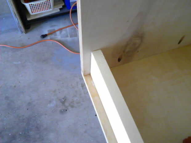Pegados y atornillados juntos los dos extremos a la mesa, poner al ras con el borde de la mesa. Luego atornilla los dos rieles entre los extremos, dando soporte a las piernas. Configurar los rieles sobre una pulgada (usando un pedazo de tablero) para ser todos "artístico".