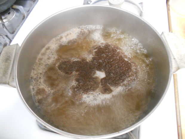Una vez que el agua está en ebullición retumbo, sacar el contenido mezclado en el agua hirviendo y continúe hirviendo durante 3 minutos.