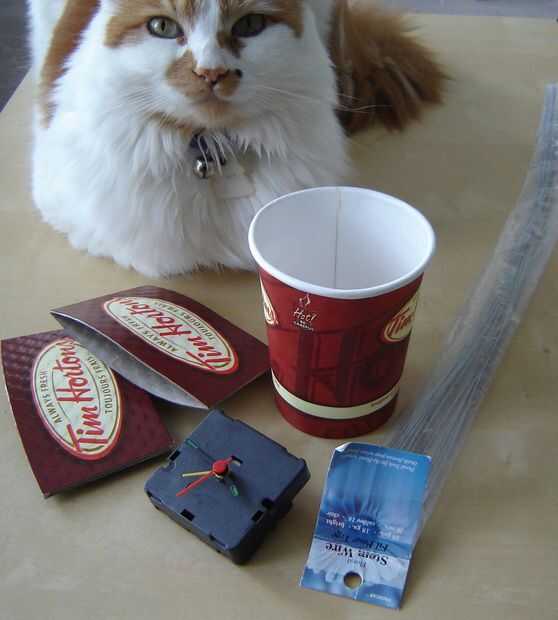 • Reloj (pequeño suficiente para ocultar detrás de la base del café de la taza - que utilicé fue de reloj despertador de viaje)