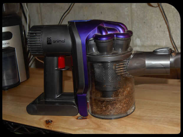 Hice este gadget de cocina de alguna madera de rascado. Hace muy bien una bolsita de café. Es un bloque de madera con un orificio para encajar un Tupperware 1/4 taza taza de medición. Os adjunto una varilla de pasador en el centro del corte un pedazo