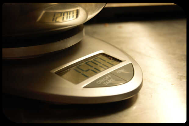 Pesar alrededor de 15 onzas de ejotes. ¿Por qué 15 onzas? Puesto que el café es empacado en bolsas de 12 onzas, y café pierde peso pierde humedad durante la asación, 15 onzas debe generar alrededor de 12,5 onzas de café tostado. Esto varía por que granos que carne asada, pero 15 onzas de café en grano duro deben raramente producir menos de 12 onzas de café tostado.