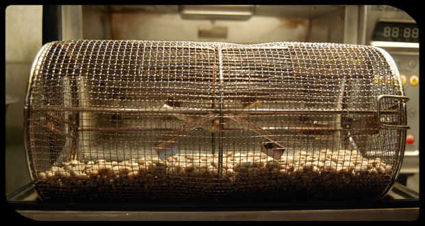 Coloque el café en el tambor según el manual de Behmor. Básicamente sólo se trata de rotaciones del tambor carga las habas en él, y enganche nuevo. Asegúrese de dar el tambor un batido mientras se mantiene paralela al piso para uniformemente distribuido.