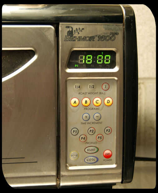 Si utiliza un ventilador de ventilación, se activa bajo. Usando el panel de control, pulse el botón "1" (aprox. 1 libra de café), el botón "A" (que corresponde a la duración de asado) y luego la tecla "P1" (que corresponde a la curva de calor). Esto nos dará el perfil de tueste óptimo de 15 onzas de frijoles duros de Sumatra. Para otros tipos de frijol, consulte la siguiente tabla (que es también en el manual de Behmor):