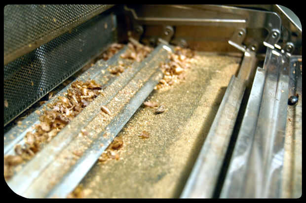 Abra el tambor y vierta los frijoles en un recipiente tarado sobre la báscula. Para futura referencia, haga nota de cuánto peso perdió el café durante el proceso de tostado.