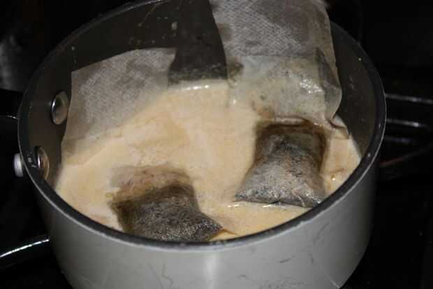4. Coloque el café en bolsa de malla fina, desechable bolsa de té o té bola. Añadir a la cacerola mientras se calienta nata.