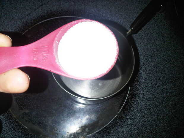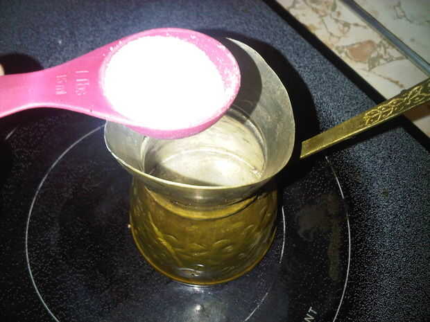 Agregar 1 cucharada de azúcar y agua para la olla y colocar en el fuego.