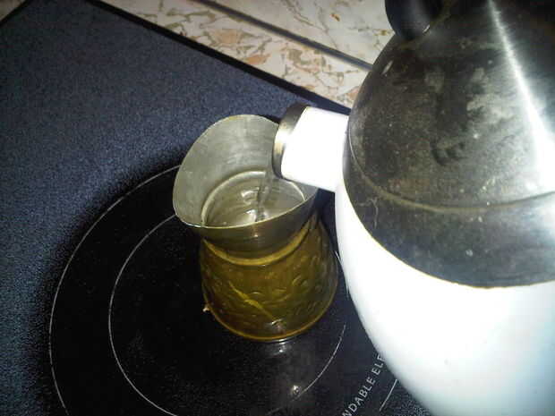 Te hace faltaIbrik (pote del café turco)olla de agua hirviendocucharas de café molido muy fino de 3-4Paso 1: hervir el aguaponer el café en el Ibrikcalentar el Ibrikponer el agua en el Ibrikcalentar otra vez