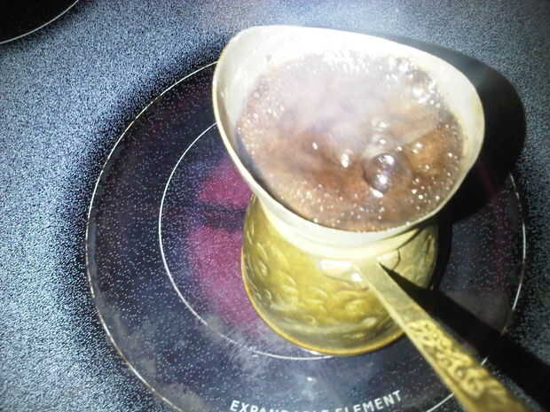 Te hace faltaIbrik (pote del café turco)olla de agua hirviendocucharas de café molido muy fino de 3-4Paso 1: hervir el aguaponer el café en el Ibrikcalentar el Ibrikponer el agua en el Ibrikcalentar otra vez