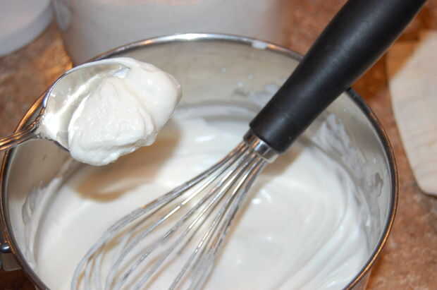Batir 1/2 taza de crema que se formen picos. Añadir el azúcar. Añada crema agria. Extender sobre la tarta de queso frío. Enfriar en la nevera para que tenga frío. (O come, si usted no puede esperar más... Creo que mía fue realmente todavía un poco caliente cuando yo cortar. )
