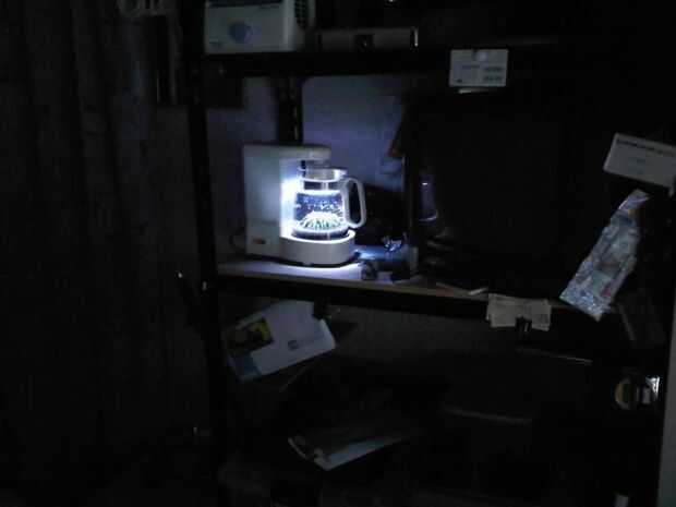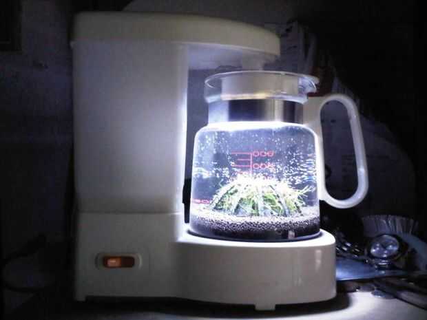 Aquí está la imagen final con una cúpula de musgo que hice dentro del recipiente de vidrio, cubierta de un rojo cereza camarón.