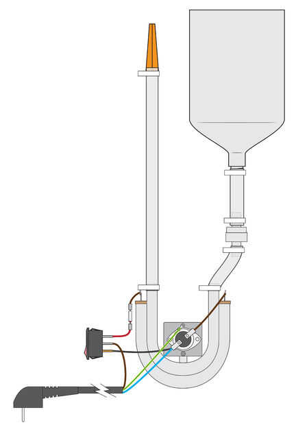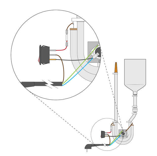 Conectar todas las piezas en el lugar correcto. Hice un esquema donde se puede ver cómo todo está conectado. Usar tanto cables de silicon como sea posible ya que pueden manejar el calor mejor que los cables normales. Los hilos de la cuerda pueden ser protegidos con el tubo de silicona.