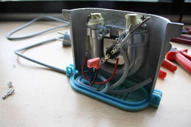 Sugiero dejar la cafetera durante unas horas antes de intentarlo hacia fuera. Luego asegurarse de que no hay ninguna fuga de agua a través de las mangas en la parte inferior. También verifique nuevamente que la carcasa no puede realizar cualquier electricidad con un multímetro.