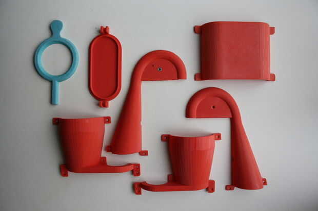 Aquí puedes encontrar el enlace a todas las piezas impresas en 3D. Debido al tamaño del objeto, se toman el dejar de fumar algunos tiempo para imprimir. Imprimí todos ellos con resolución de impresión estándar de Makerware.